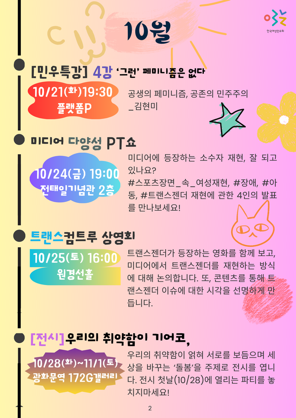 - ์ฑํ๋ฑ ์ค์ฒ ํ๋ก๊ทธ๋จ: ๋ฏธ๋์ด ๋ค์์ฑ PT์ผ, ์ฌ์ฑ๋