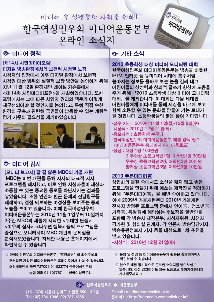 [2010.11] 한국여성민우회 미디어운동본부 온라인 소식지