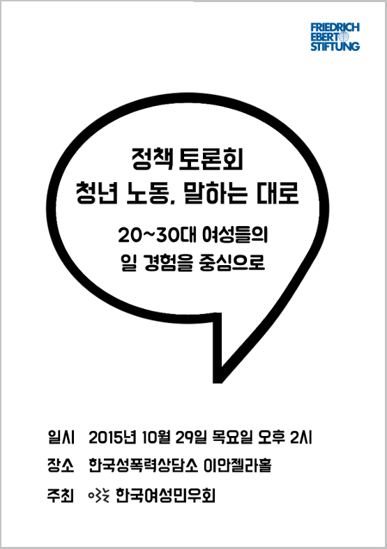 <정책토론회 : 청년노동, 말하는대로 - 20~30대 여성들의 일 경험을 중심으로> 자료집입니다.