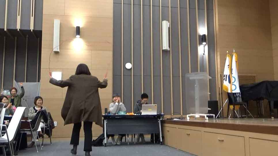 2020년 한국여성민우회 정기총회에서 사업계획 발표를 위해 줄넘기를 하며 등장하는 활동가 꼬깜