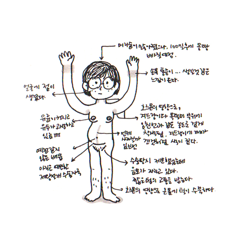 출산 후 50일이 지났다. 그 사이 아기의 탯줄은 떨어졌고, 얼굴이 뽀얘졌다. 이제는 엄마, 아빠의 얼굴을 보고 웃는다. 나는 수술 부위가 잘 아물었고, 임신선은 아주 조금 흐려졌으며, 이제 아기들 사이에서 우리 아기의 얼굴을 구별할 수 있게 되었다. 그리고 차츰 나를 ‘엄마’라고 말하는 일에 익숙해졌다. 하루는 잠이 부족해서 수유 대신 분유를 먹였더니 가슴을 바늘로 찌르는 듯한 통증을 겪었다. 그날 뭉친 가슴을 풀려고 필사적으로 종일 젖을 물렸다. 수차례 어려움을 겪고 났더니 물만 마시거나 아기가 우는 소리에도 젖이 도는 느낌이 온다. 고단한 일이지만 덕분에 젖몸살 없는 하루를 보낸다.