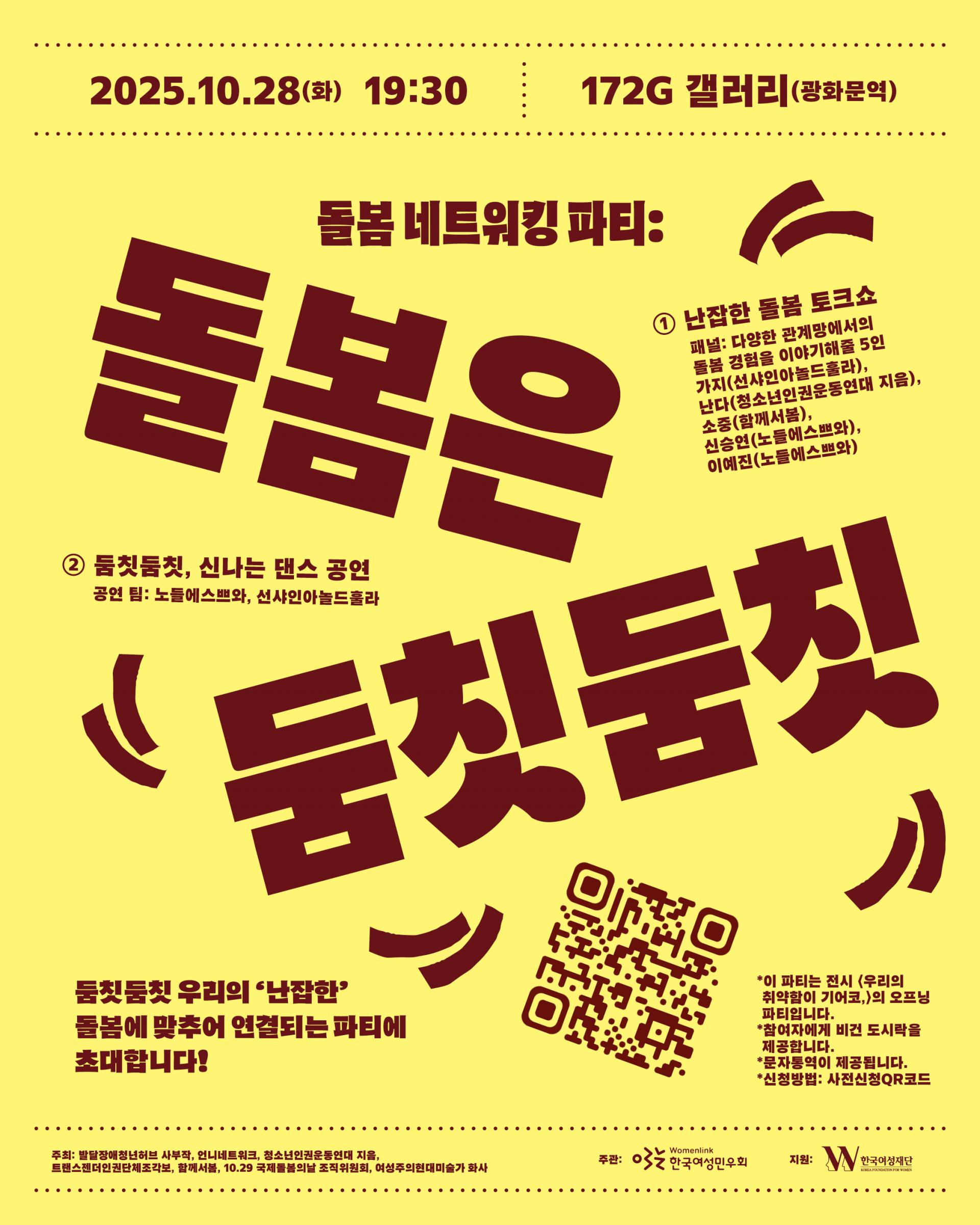 🌈 주최: 👽발달장애청년허브 사부작, 👽언니네트워크, 👽청소년인권운동연대 지음, 👽트랜스젠더인권단체조각보, 👽함께서봄, 👽10.29 국제돌봄의날 조직위원회, 👽여성주의현대미술가 화사