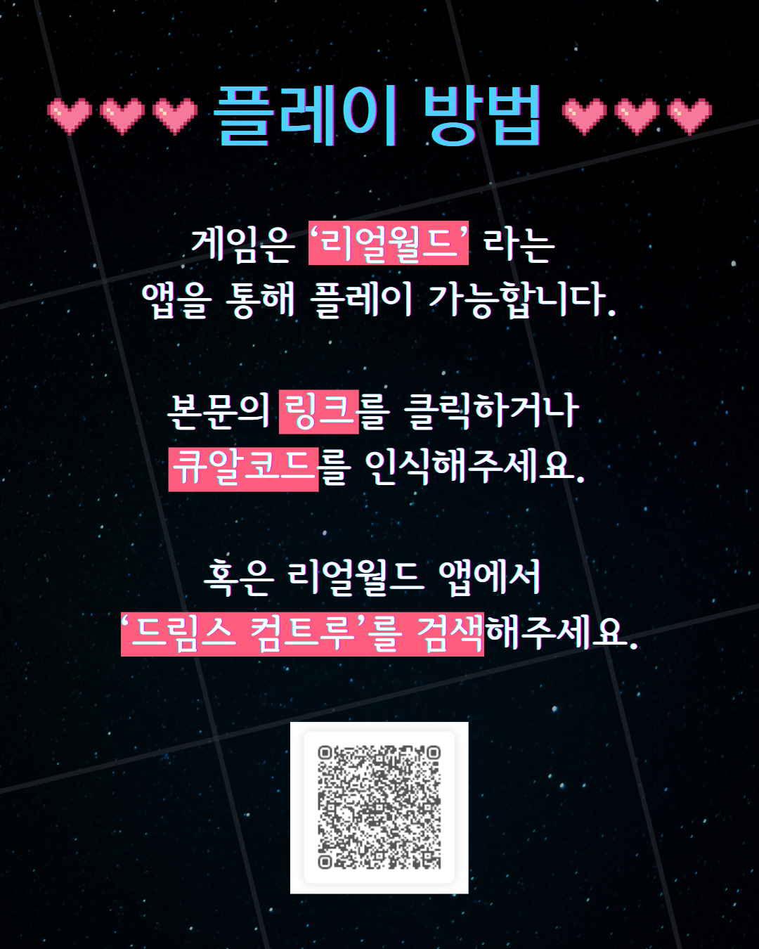 혹은 리얼월드 앱에서 ‘드림스 컴트루’를 검색해주세요.