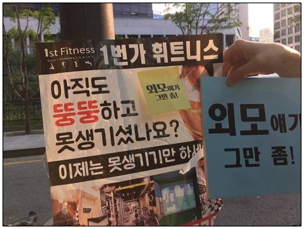 9월 1일 신촌과 홍대 주변, 그리고 9월 14일 종로 일대를 돌며 여성비하와 소수자 혐오 등 불편함을 불러일으키는 거리 광고물들에 포스트잇을 붙이는 액션을 진행했습니다.