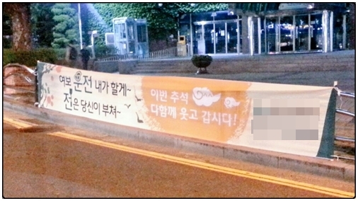 명절 날 다함께 웃고 가자며 ‘운전은 내가 할 테니 전은 당신이 부치라’는 모 정당의 현수막.“과연 누가 웃을 수 있을까?”#고조선이야뭐야~