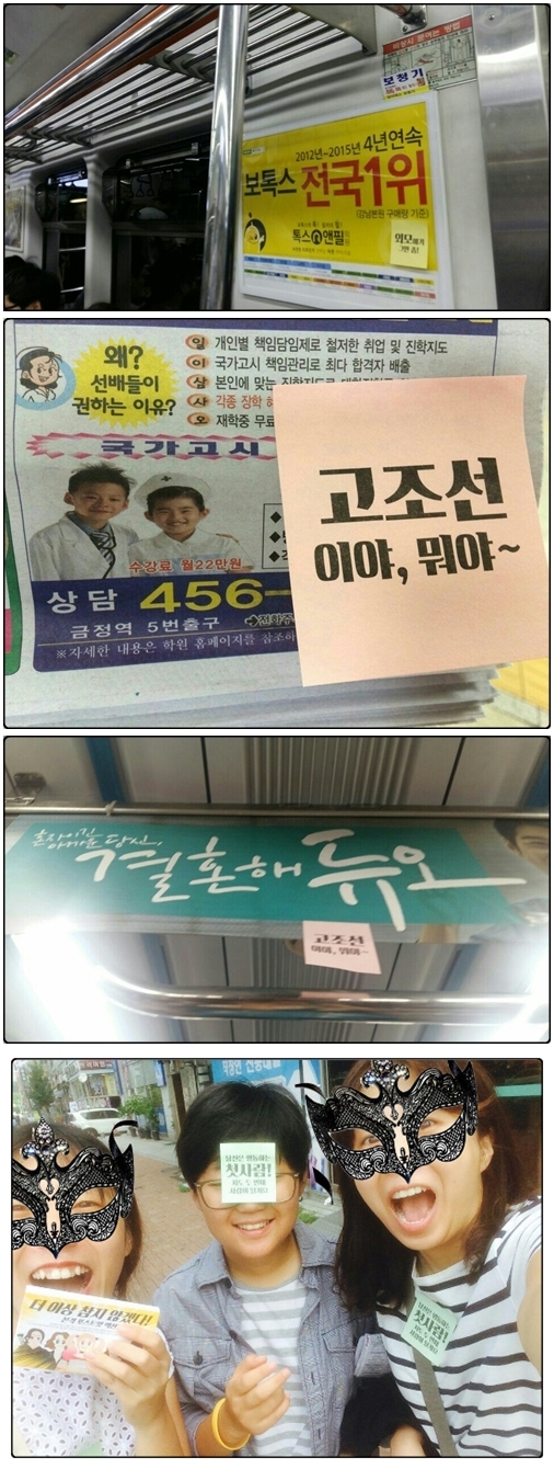 성역할 고정관념을 강요하는 광고들에는‘고조선이야 뭐야’ 포스트잇을 붙였어요.