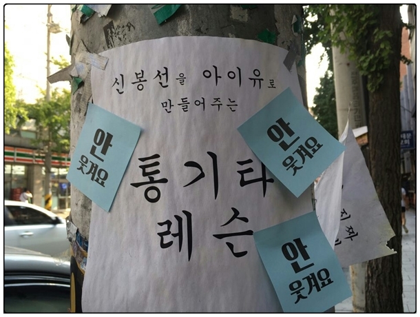 거리의 전단지. 기타 레슨 홍보에 웬 여성연예인 외모 지적?