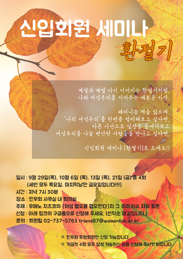 ※ 민우회 후원회원만 신청 가능합니다. (선착순 마감입니다.)