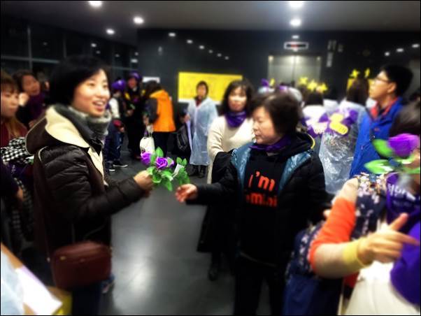 회원들과 함께 행사장을 찾았는데요. 행사에 가기 전에 성폭력상담소에서 제작한 '첫사람' 보라 꽃을 준비했습니다.