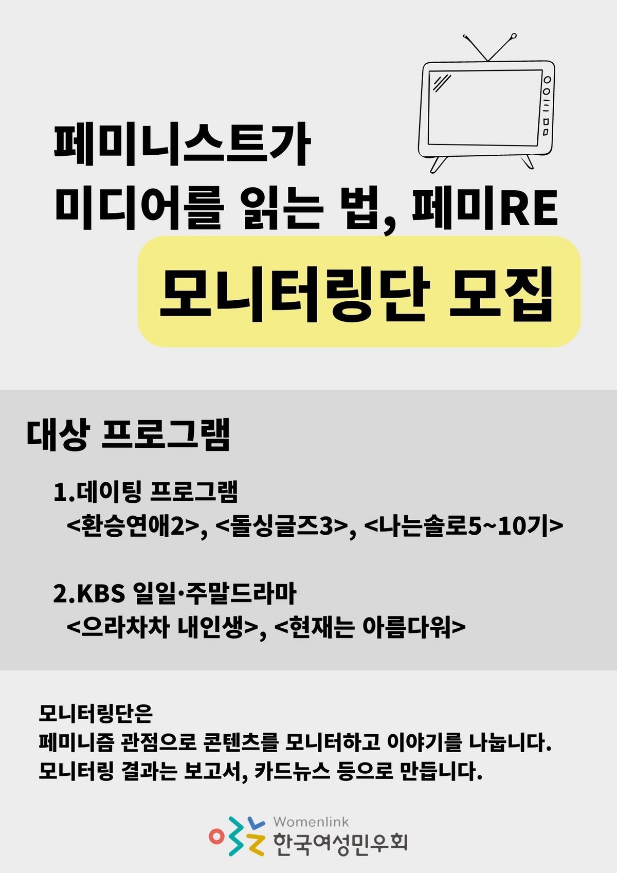 미디어를 성평등하게 바꿔가고 싶은 분들, 우리의 모니터링 열차에 함께 타세요!