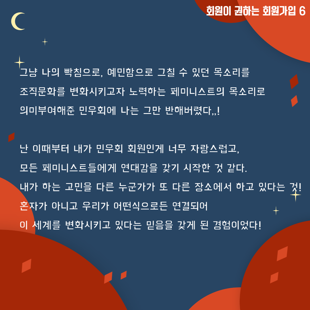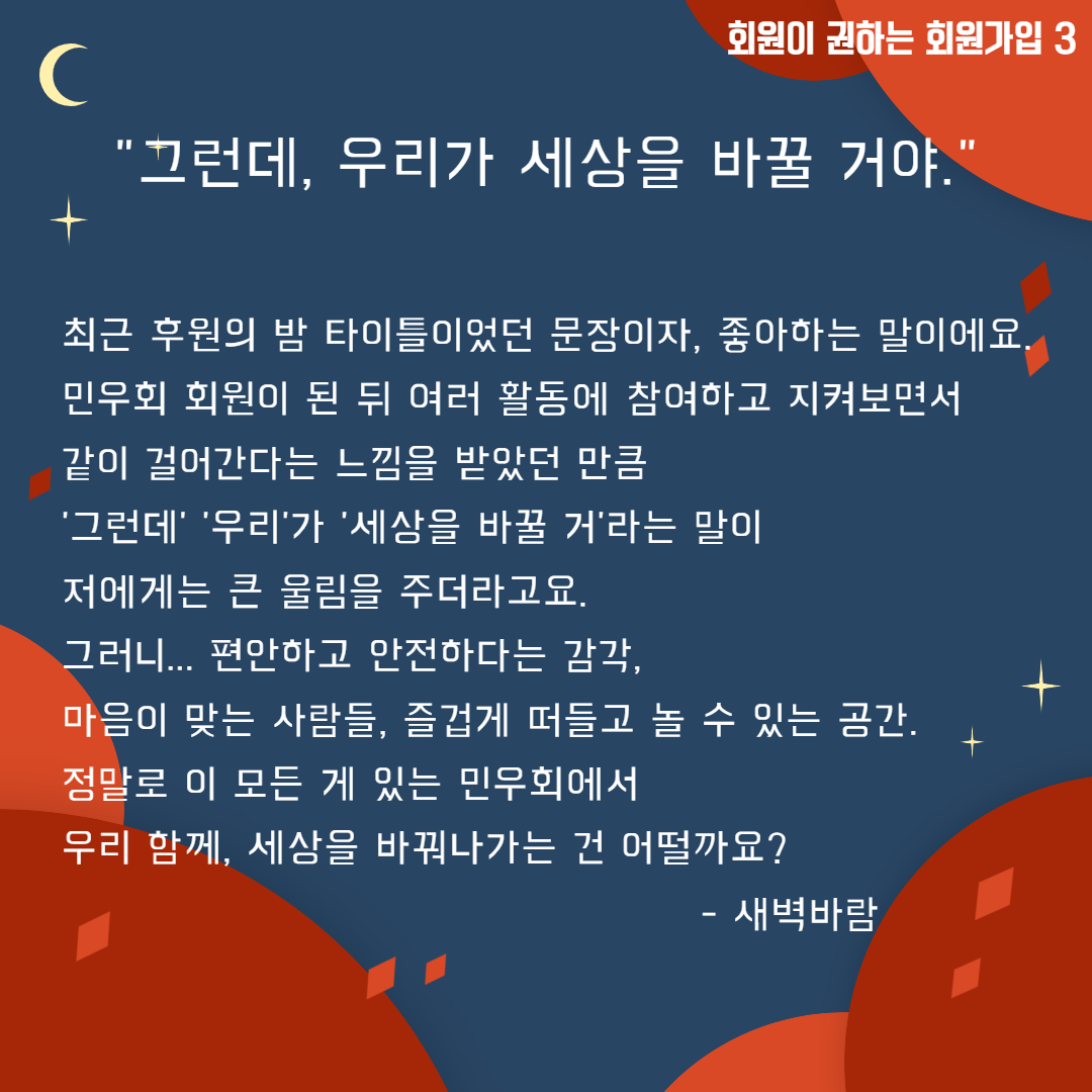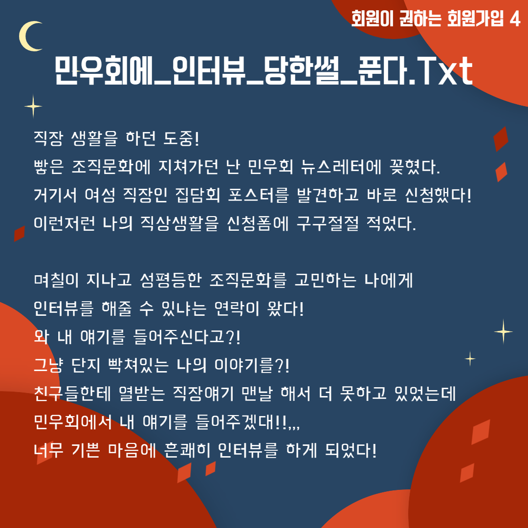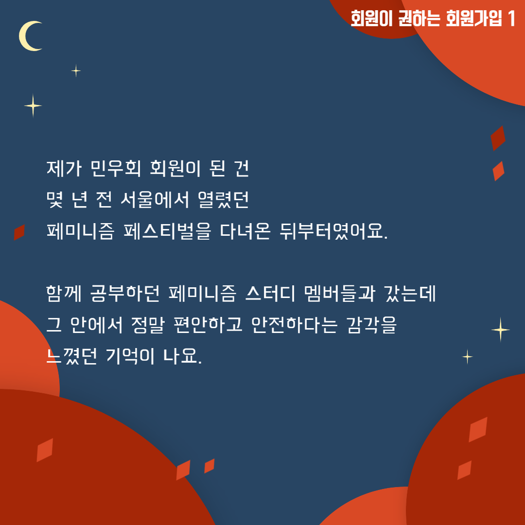 민우회라는 생각이 딱! 들어서 가입하게 됐답니다.
