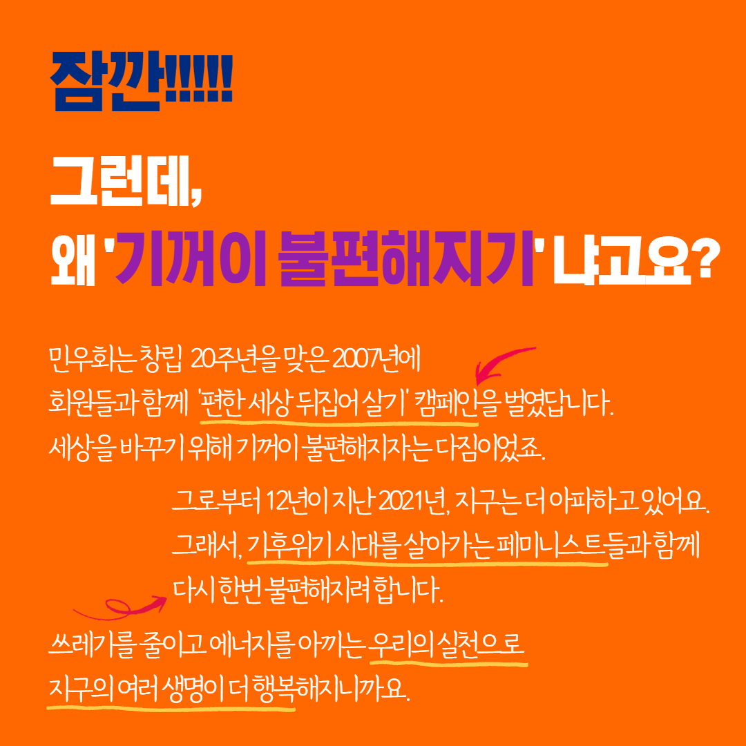 지구를 위해서 모두를 위해서 기꺼이 불편해지기로 해요.