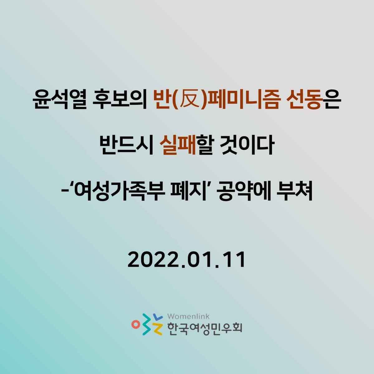 윤 후보의 ‘여성가족부 폐지’는 반(反)페미니즘을 도구로 지지율을 올려보기 위한 것 이상의 의미를 찾아보기 어렵다. 이는 ‘성범죄 무고죄 처벌 강화’를 정책으로 내놓으며 일부 남성들의 주장을 되풀이한 것과 다르지 않은 행태이다. 언제까지 차별과 혐오를 동력 삼아 지지를 호소할 것인가? 차별·혐오 주장을 어디까지 받아 안을 것인가?