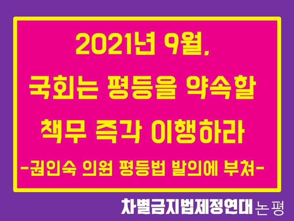 2021년 9월, 국회는 평등을 약속할 책무 즉각 이행하라