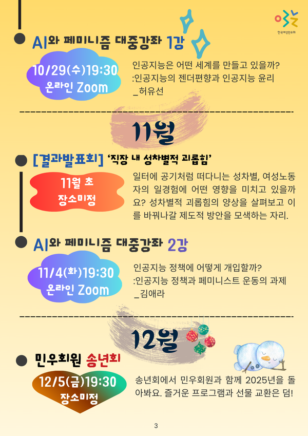 👉 다가올 민우회의 하반기 일정🗓️, 여러분과 함께할 때 더욱 빛납니다. 관심과 참여로 자리를 채워주세요!💜