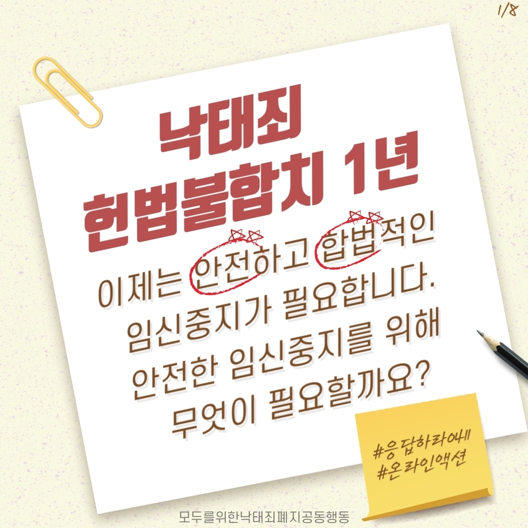 카드뉴스 1 - 낙태죄 헌법불합치 1년 , 이제는 안전하고 합법적인 임신중지가 필요합니다.