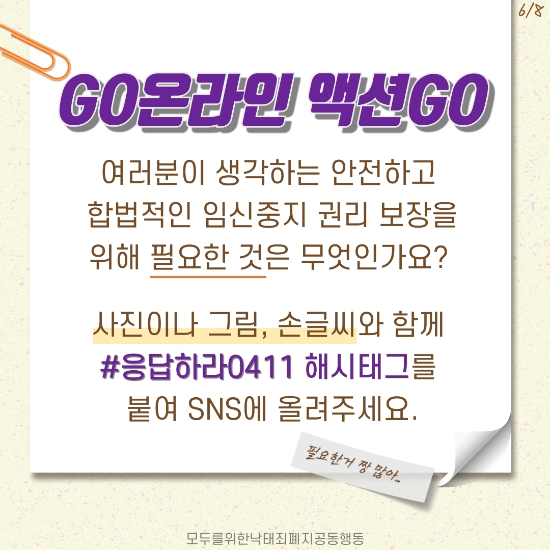 "안전한 임신중지를 위해 무엇이 필요할까요?" 카드뉴스 제작과 함께, 온라인 액션을 진행합니다.