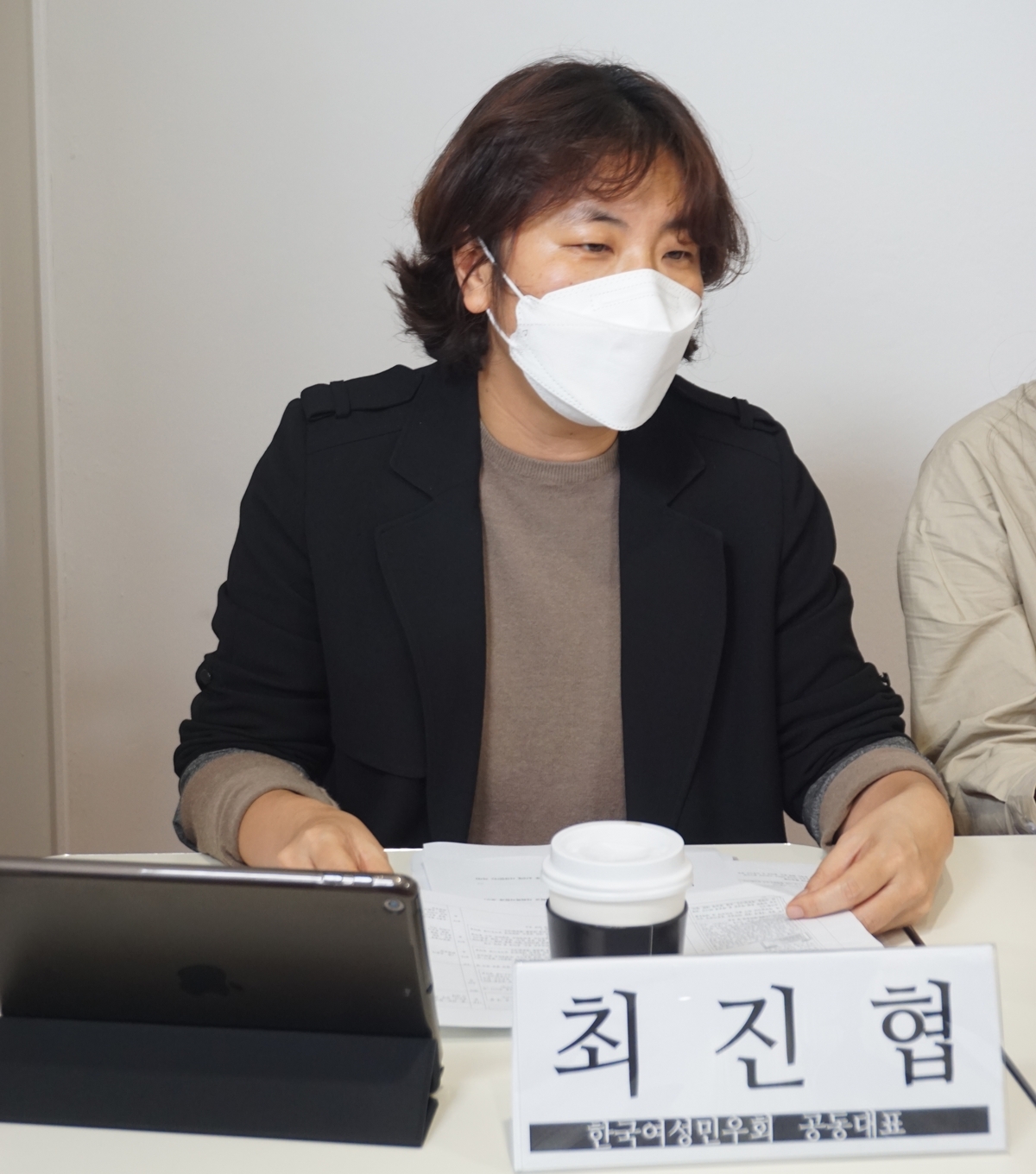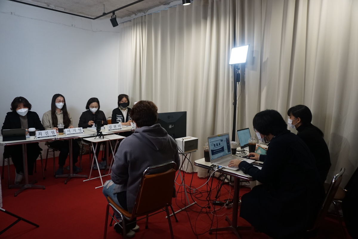 사진 1. 합정역 인근의 스튜디오에서 온라인 포럼을 준비 중인 활동가와 발표자 사진.