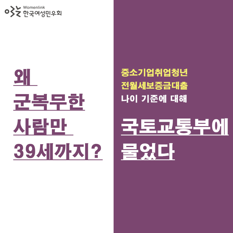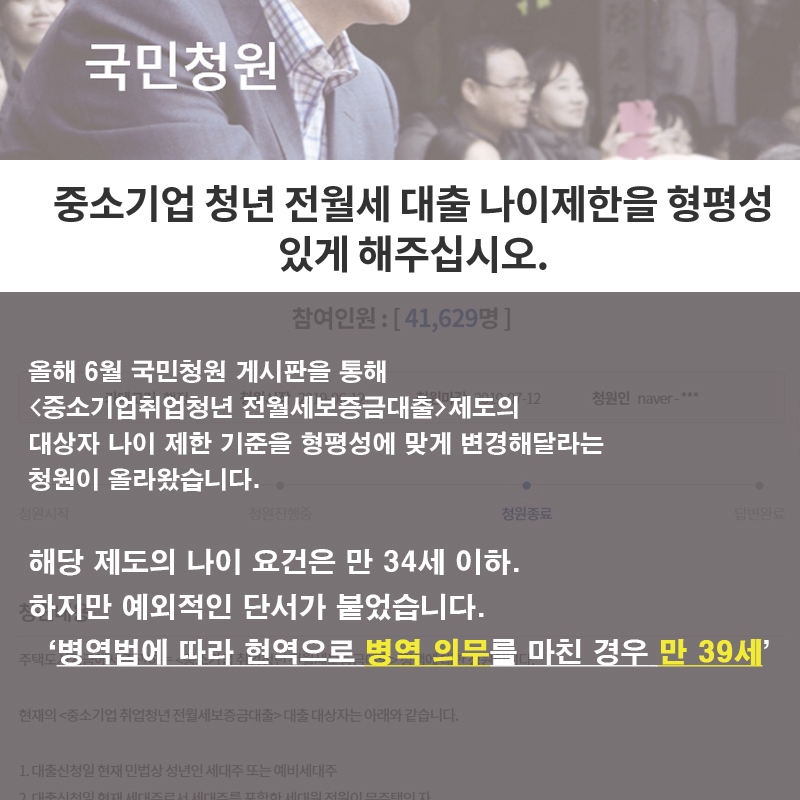 국토교통부는 '중소기업취업청년 전월세보증금대출'의 병역여부에 따른 나이 차등 요건을 삭제하십시오!
