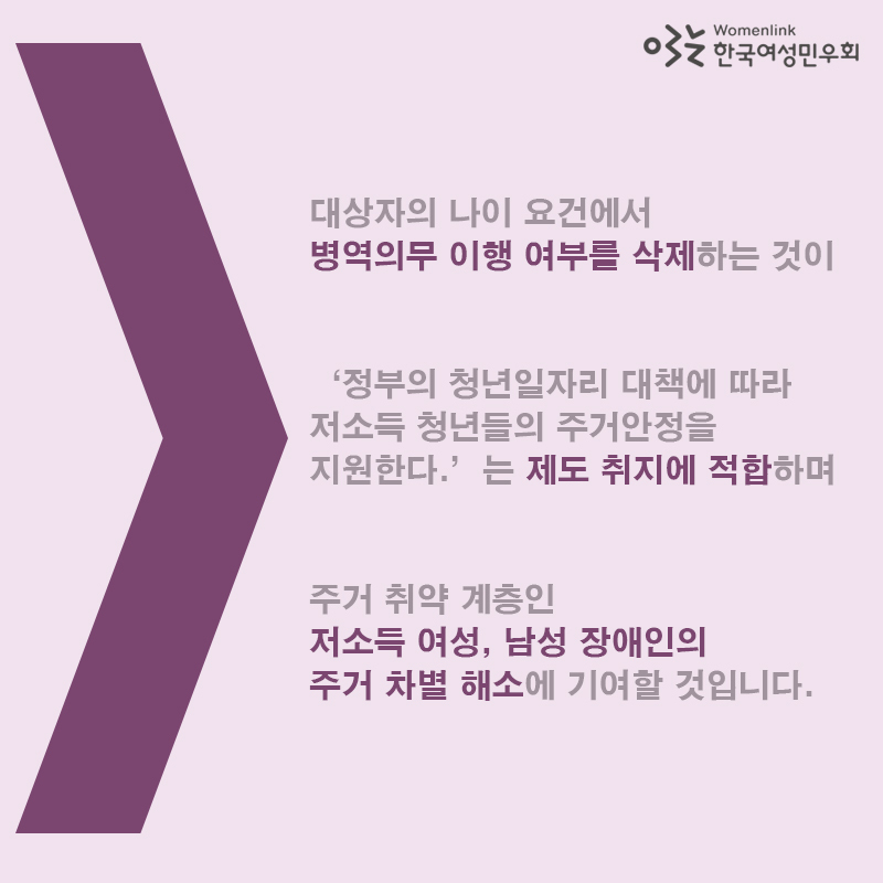 대상자의 나이 요건에서 병역의무 이행 여부를 삭제하는 것이