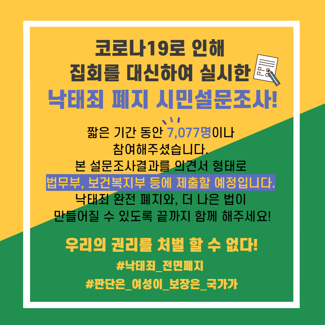 조사기간 총 19일, 총 응답인원 7,077명! #낙태죄폐지목소리는 여전히 뜨겁습니다!