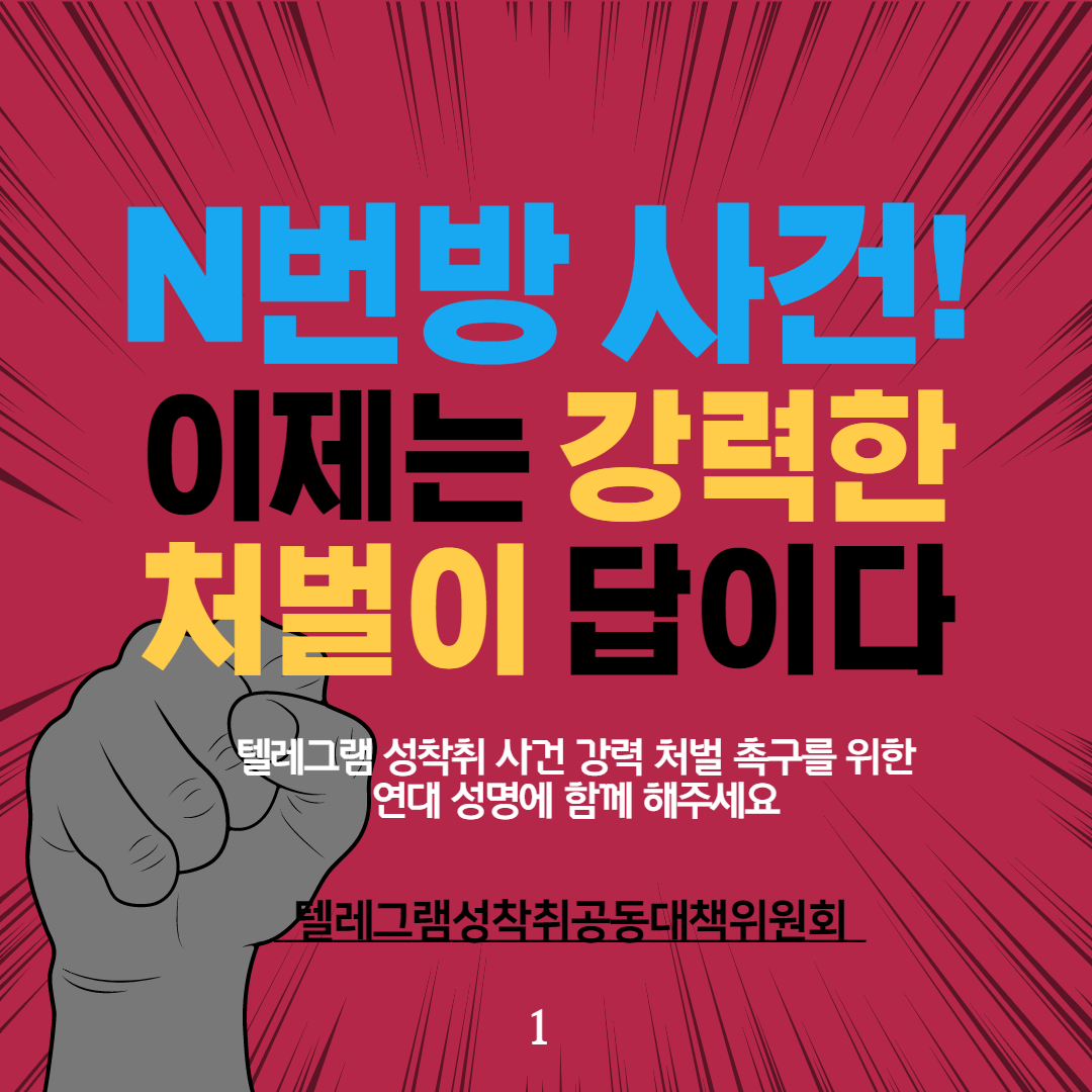 피해자들은 울면서 애원했습니다. 유포하지 말아 달라고 애원해야 했습니다. 경찰에 신고하겠다고 했을 때, 가해자들은 5, 4, 3, 2, 1, 을 카운트하며 영상을 유포했습니다. 경제적으로, 연령과 사회적으로 취약한 상태에 있던 피해자들은 경찰에 신고하는 행위 하나에 목숨을 걸어야 했습니다. 경찰에 신고한 피해자는 특정하여 포털사이트 실시간 검색에 이름이 올라오게 명령했고, 영상을 더 보고자 했던 수없는 공범들이 그 명령을 수행했습니다. 가해자들은 수사를 훼방하고 사법을 비웃었습니다. 텔레그램 방에 잠입하여 취재하던 기자와, 채증하던 여성시민들을 겁박했고, 이들의 검거를 온 시민들이 기다리고 있을 때 수사 정보를 공유하며, 서로 행위를 경쟁하고 과시하며 법과 제도와 권리에 기반한 사회적 제재를 무력화시켜왔습니다.