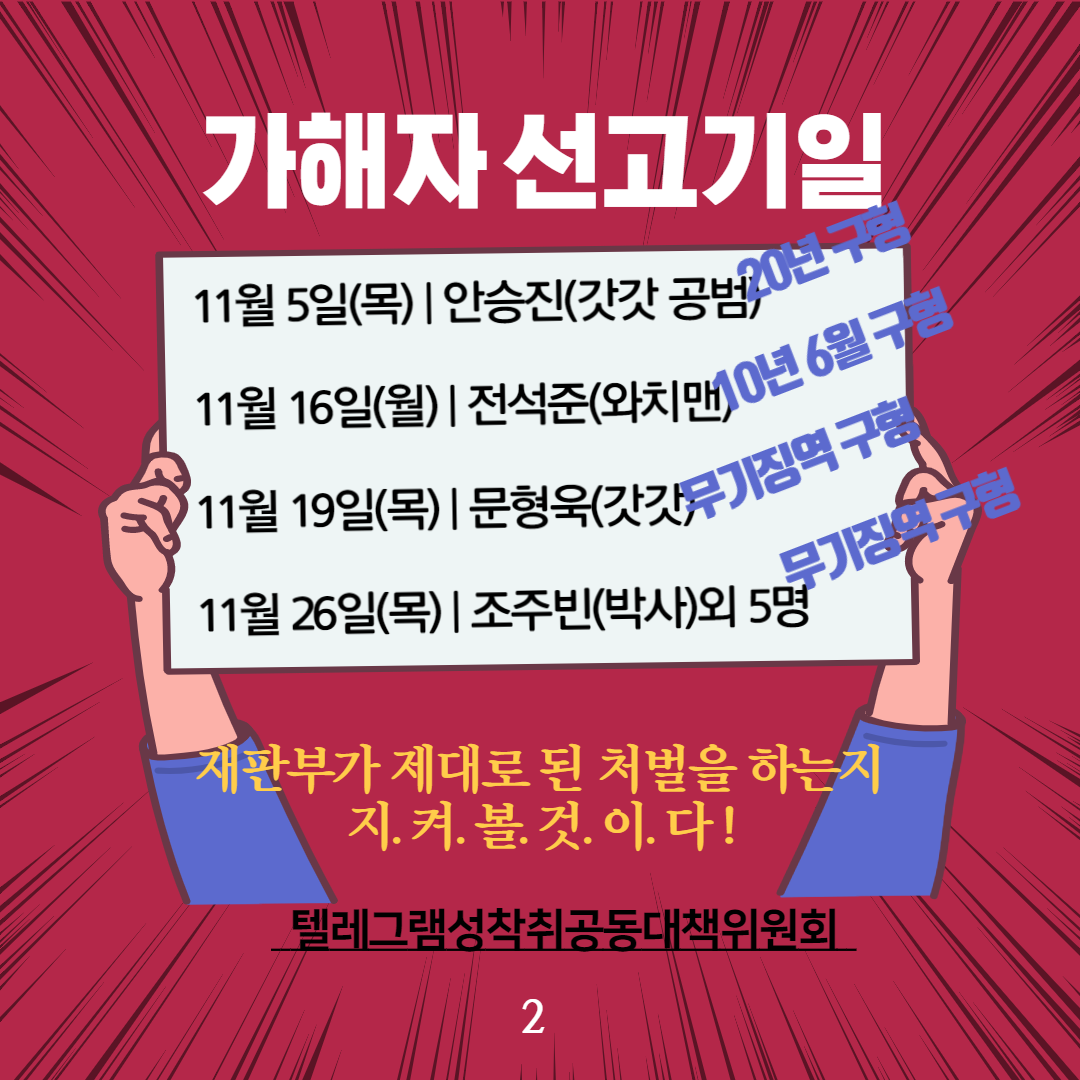 각각 높은 수준의 구형이 내려졌지만, 우리는 형식적인 구형이 아닌 '현실의 제대로 된 처벌'을 원합니다.