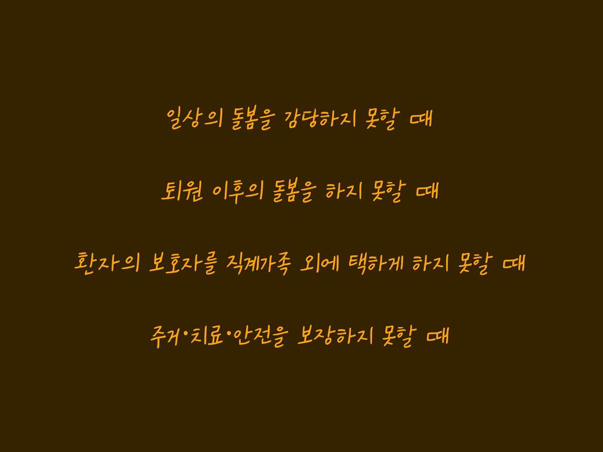 - 퇴원 이후의 돌봄을 하지 못할 때