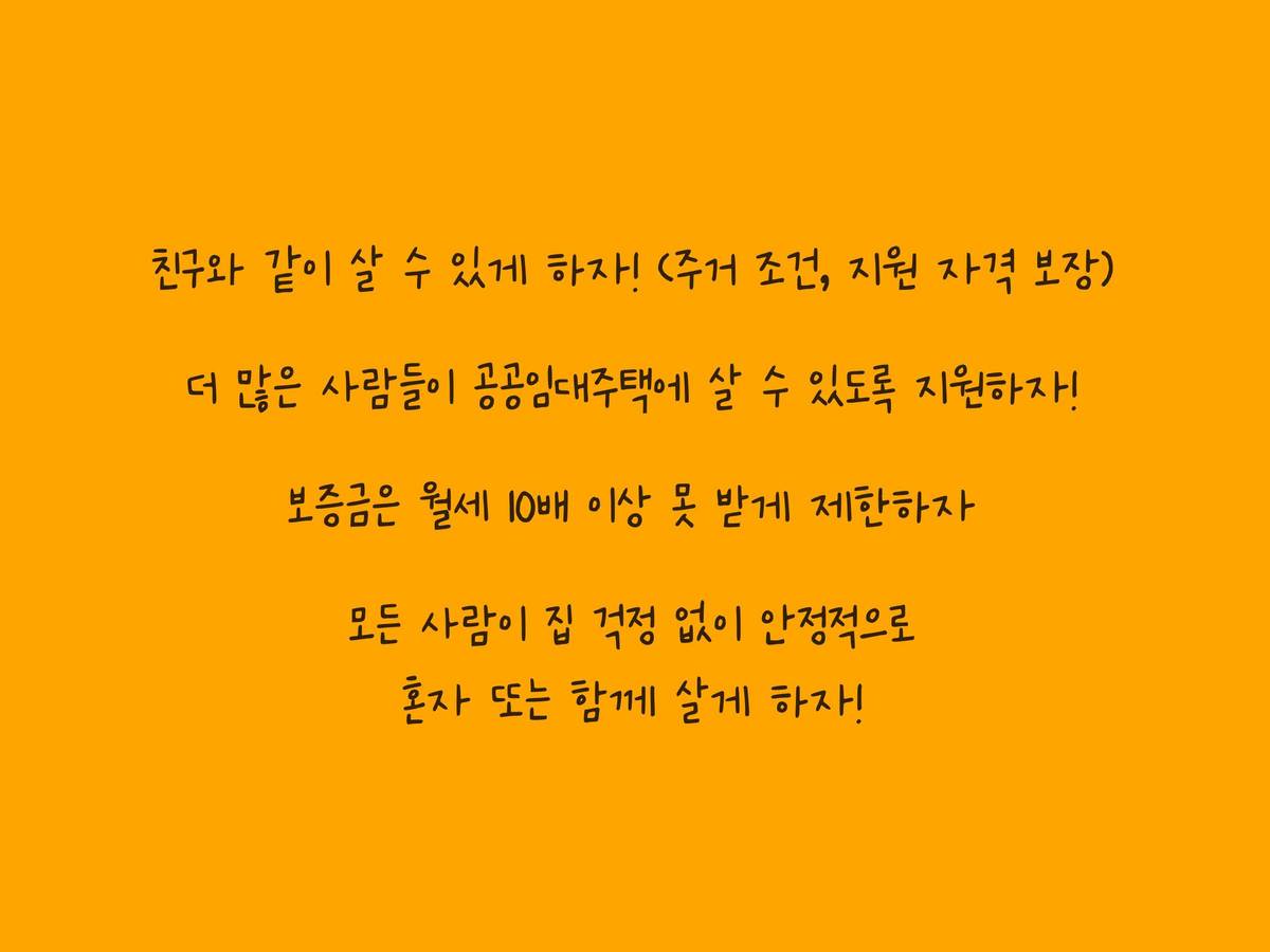 - 더 많은 사람들이 공공임대주택에 살 수 있도록 지원하자!