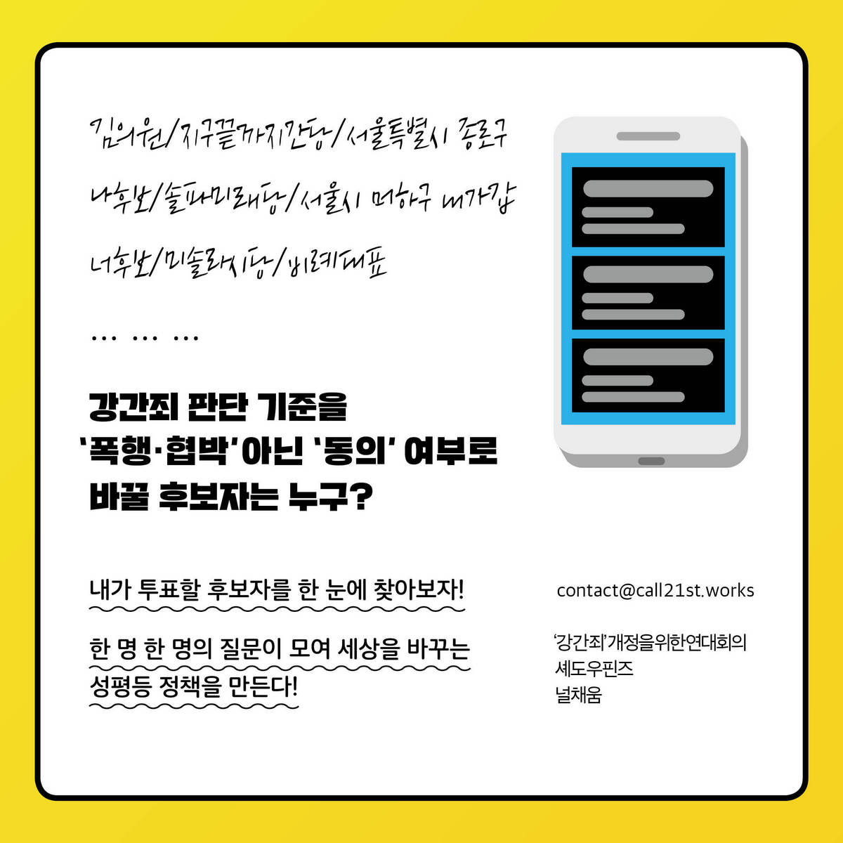 ►21대 국회의원 후보자에게 '강간죄 개정' 여부 질문하러 가기